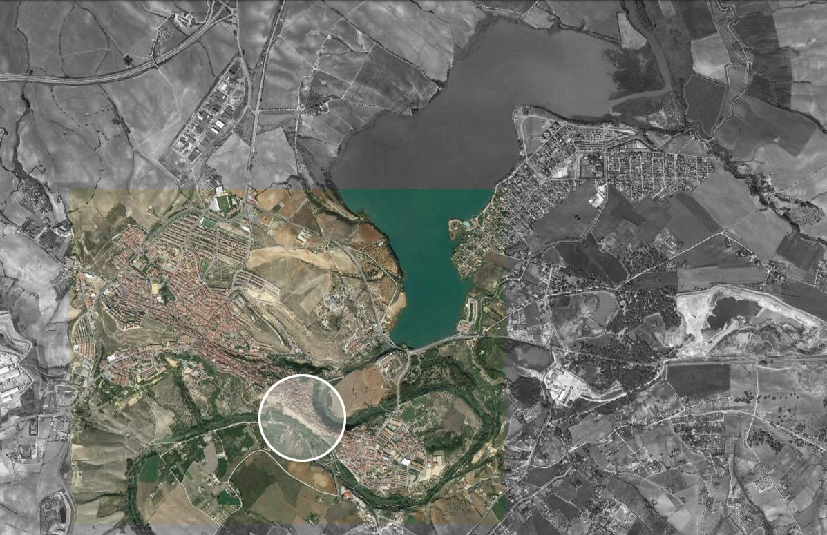La alineación de las antiguas casas se retoma, pero no para revindicar una línea en el suelo que recuerde lo que hubo antes; sino para potenciar aún mas la estrechez de la calle Maldonado en éste tramo y dinamitarla. Proteger la alineación para crear un proyecto. Un edificio público sin posibilidad de perspectivas. La idea de una nueva plaza ni se plantea. El edificio respetará la antigua alineación para acentuar aún mas el nuevo horizonte que se abre. La calle mantiene su espacialidad física pero ésta se transforma radicalmente ante las nuevas visiones que se abren… las únicas posibles desde su emplazamiento. Vistas de la Vega del Guadalete a través del propio edificio. No se organiza un mirador, una salida puntual para asomarse al corte, sino que el propio edificio se convierte en marco.