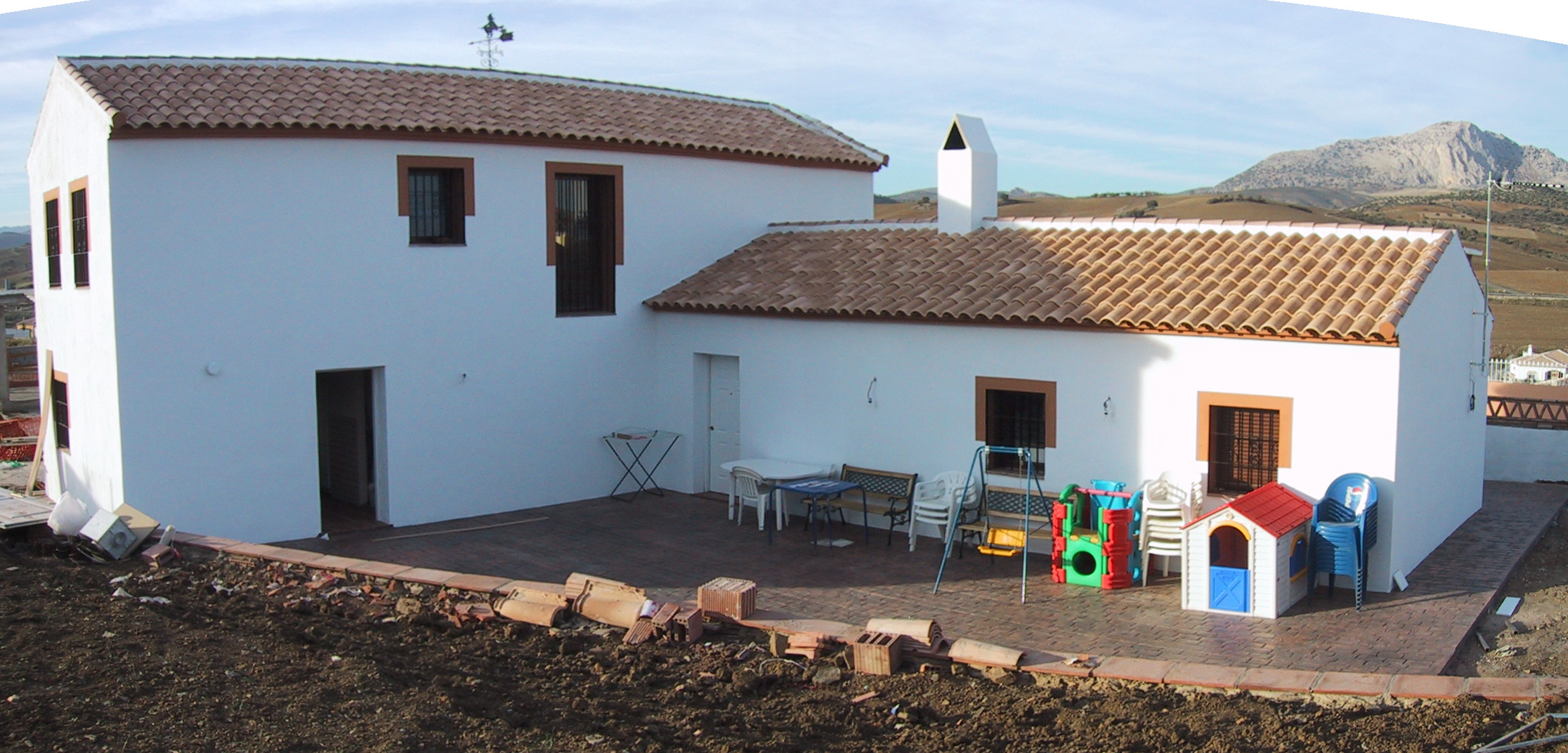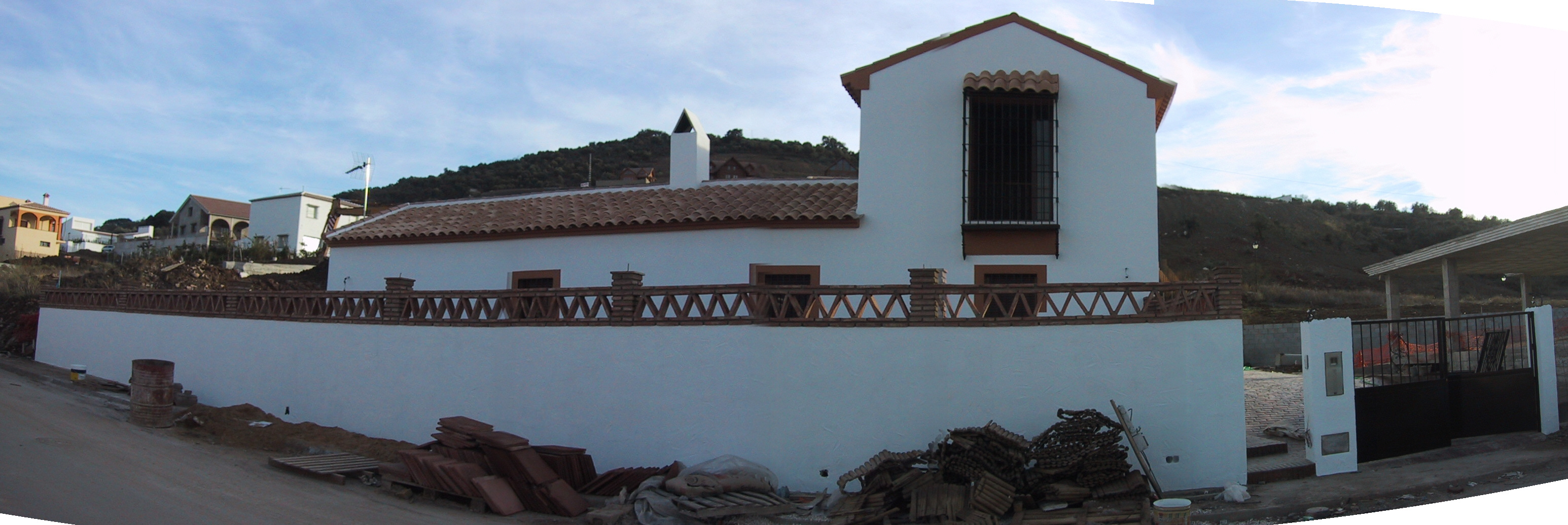En nuestro caso, sin embargo, la casa se levanta en una urbanización a las afueras de Casabermeja; un extraño emplazamiento que introduce una parcelación de suburbio residencial urbano en medio del campo. Si imaginamos la urbanización dentro de unos años, cuando cada propietario haya construido su vivienda dentro de cada parcela, nos encontraremos con un núcleo urbano en el que será imposible buscar cualquier referencia a lo rural.