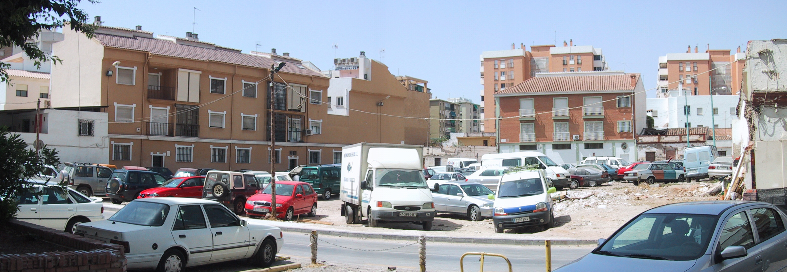 En un solar sin referencias, se emplaza una biblioteca pública, edificio que por su carácter y actividad debe dinamizar el entorno. La falta de referentes nos decide a proponer un edificio introspectivo que invente desde sus propios mecanismos un nuevo paisaje urbano más acogedor. Se propone semi-peatonalizar el entorno del nuevo edificio, desviando el tráfico por el nuevo tramo de calle Rambla y reduciendo la sección de los viales para controlar la velocidad de los vehículos. La biblioteca se ciñe a las alineaciones existentes con una crujía de ancho variable que conforma una manzana cerrada; ésta es atravesada por una crujía que conforma una calle-vestíbulo que permite cruzar el edificio y genera dos patios en el interior.