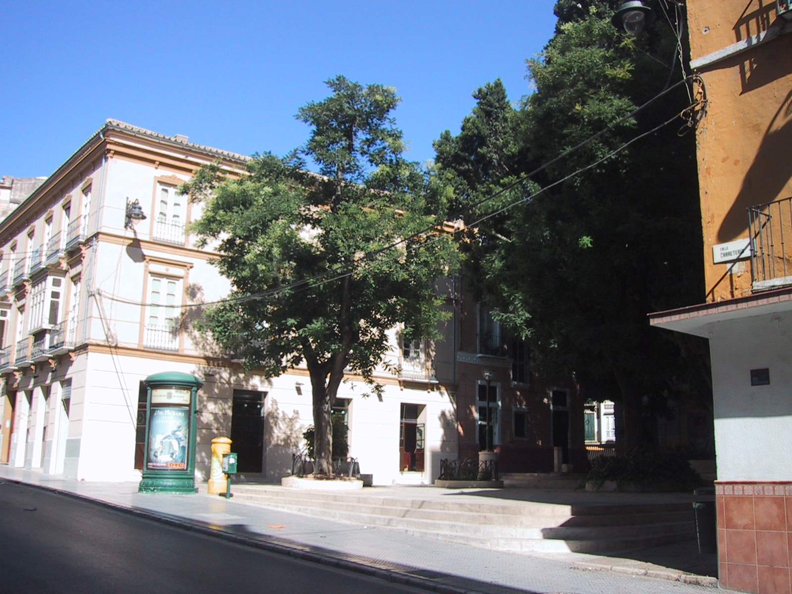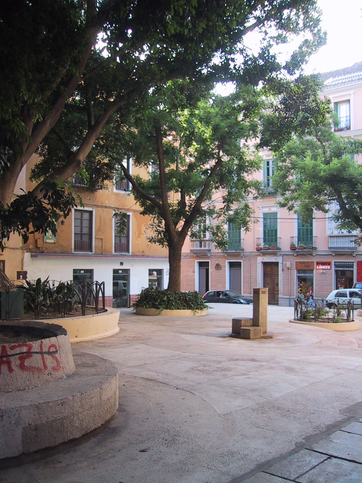 Panorámica de la plaza: en un extremo, la bulliciosa calle Carretería y en el otro, el oscuro e inexplorado fondo de la plaza.